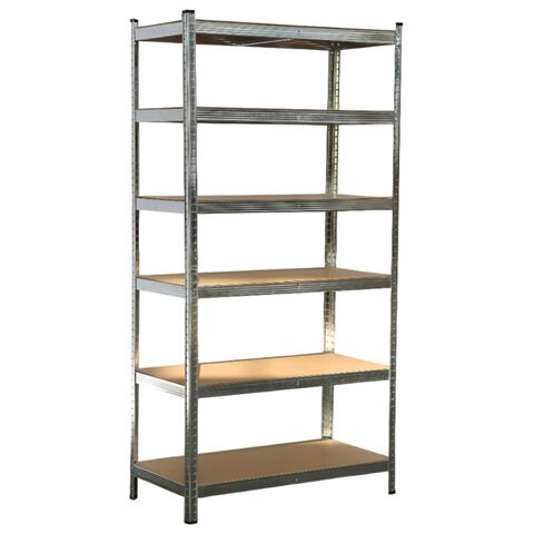 Стеллаж металлический BOOMHOUSE (БУМХАУС) безболтовой, 2000x1000x500 мм, 6 полок МДФ, нагрузка на стеллаж до 875 кг, серебристый, 291416