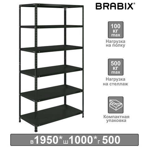 Стеллаж металлический BRABIX "ГРАФИТ MS KD-195/50-6", лофт, 1950х1000х500 мм, 6 полок, 291273, S240BR245693