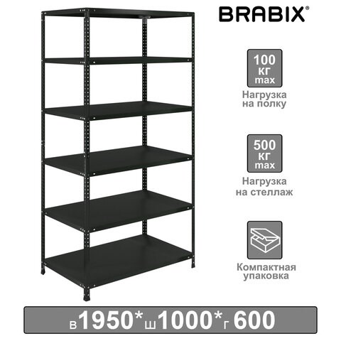 Стеллаж металлический BRABIX "ГРАФИТ MS KD-195/60-6", лофт, 1950х1000х600 мм, 6 полок, 291274, S240BR246693