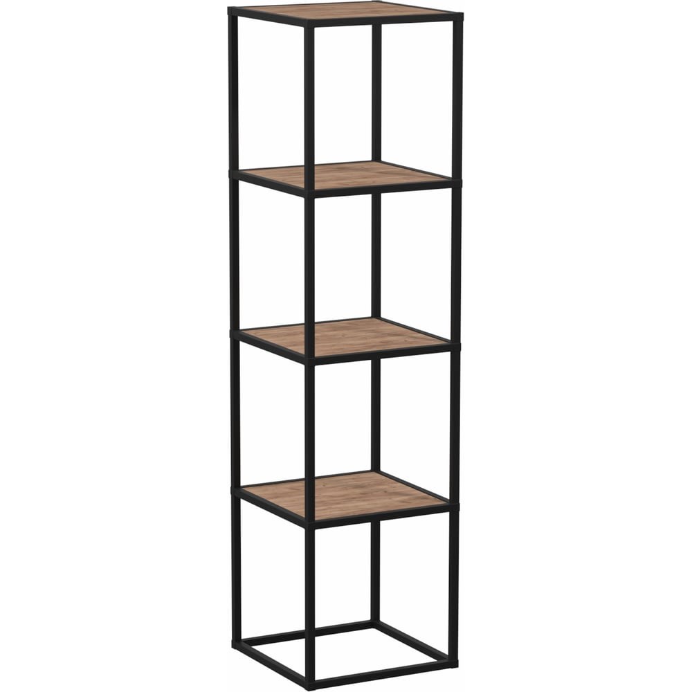 Стеллаж НАЙДИ 4, 400x400x1546 мм, черный муар, лдсп дуб крафт табачный LS4-55004 впишется практически в любой интерьер и не займет много места. Сама конструкция визуально очень легкая, благодаря отсутствию боковых стенок. У стеллажа 4 полки, которые выдерживают вес 110 кг. Изделие упаковано в коробку в разобранном виде. Для сборки потребуется молоток с резиновым наконечником.