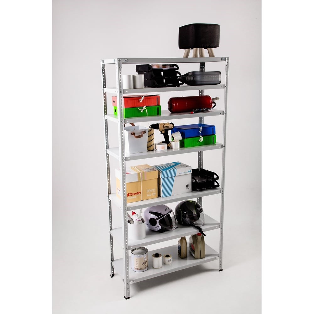 Стеллаж ООО ФУРАМА СТФ 2500х1100х300 мм 7 полок СТФ251130-7 поставляется в разобранном виде. Модель включает в себя дополнительные углы, которые увеличивают жесткость конструкции. Уголки жесткости (16 шт.) крепятся только на верхнюю и нижнюю полку по 8 шт., полки между ними крепятся на болты и гайки. Можно менять положение полок с шагом в 25 мм. Каждая стойка в 1000 мм и 500 мм (при создании стойки 2,5 метра) монтируется соединителем с помощью болтов и гаек. Нагрузка на стеллаж: до 750 кг. Нагрузка на полку: до 100 кг. Полки оснащены ребром жесткости. Подпятники не регулируемые. К данной модели подходят полки арт. СТФ-П11.3.