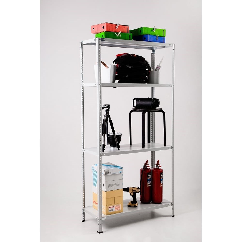 Стеллаж ООО ФУРАМА СТФЛ 1500х700х400 мм 4 полки СТФЛ157040-4 поставляется в разобранном виде. Модель включает в себя дополнительные углы, которые увеличивают жесткость конструкции. Уголки жесткости (16 шт.) крепятся только на верхнюю и нижнюю полку по 8 шт., полки между ними крепятся на болты и гайки. Можно менять положение полок с шагом в 25 мм. Каждая стойка в 1000 мм и 500 мм (при создании стойки 1,5 метра) монтируется соединителем с помощью болтов и гаек. Нагрузка на стеллаж: до 500 кг. Нагрузка на полку: до 100 кг. Полки оснащены ребром жесткости. Подпятники не регулируемые. К данной модели подходят полки арт. СТФ-П7.4.