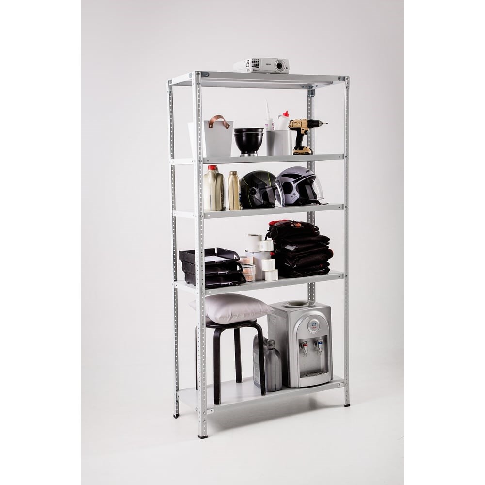 Стеллаж ООО ФУРАМА СТФЛ 1800х1000х300 мм 5 полок СТФЛ181030-5 поставляется в разобранном виде. Модель включает в себя дополнительные углы, которые увеличивают жесткость конструкции. Уголки жесткости (16 шт.) крепятся только на верхнюю и нижнюю полку по 8 шт., полки между ними крепятся на болты и гайки. Можно менять положение полок с шагом в 25 мм. Каждая стойка в 1000 мм и 800 мм (при создании стойки 1,8 метра) монтируется соединителем с помощью болтов и гаек. Нагрузка на стеллаж: до 500 кг. Нагрузка на полку: до 100 кг. Полки оснащены ребром жесткости. Подпятники не регулируемые. К данной модели подходят полки арт. СТФ-П10.3.