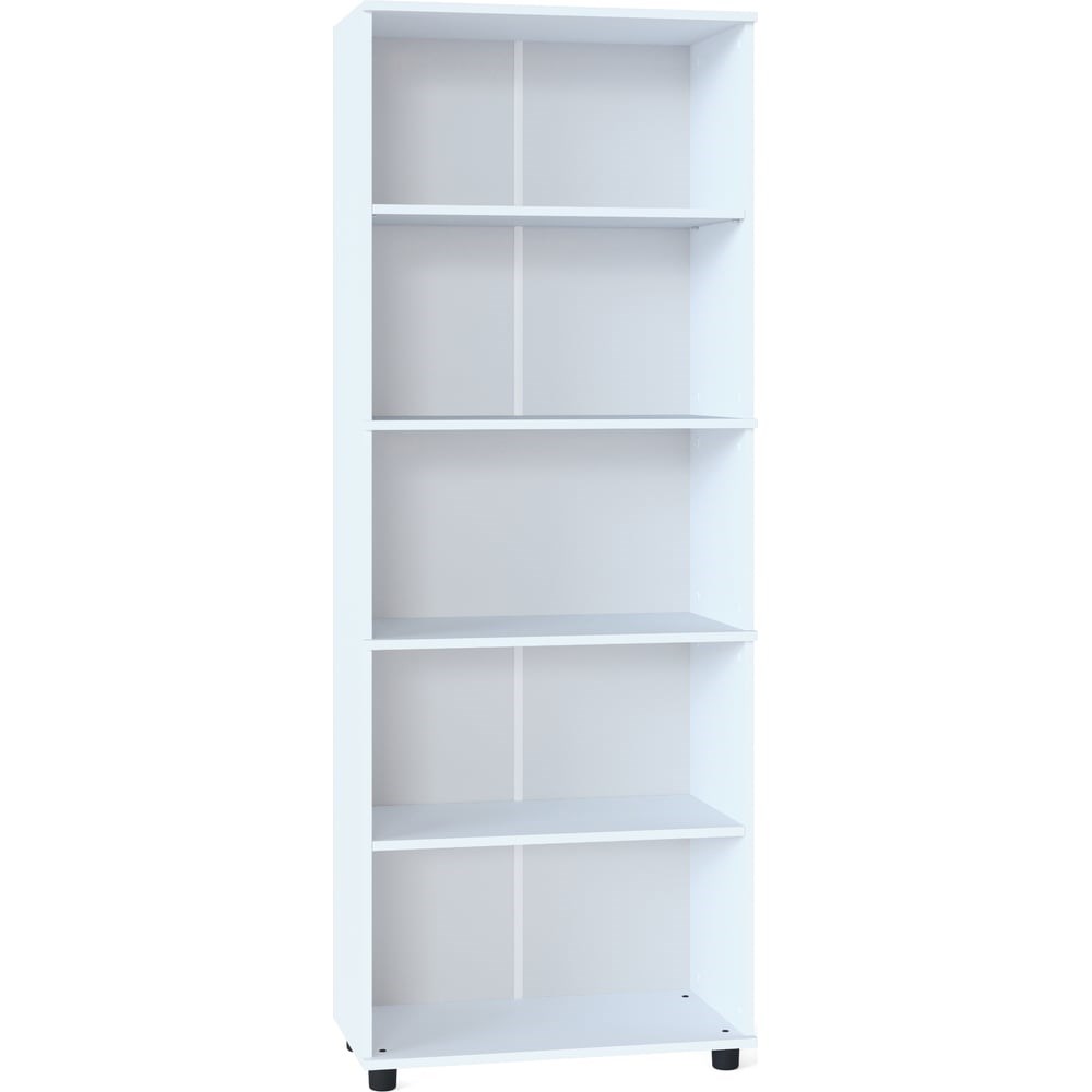 Стеллаж СОКОЛ ШУ-20 белый 00-00012008 предназначен для использования в качестве открытого стеллажа. Корпус и полки стеллажа изготовлены из качественного ламинированного ДСП толщиной 16 мм, самого популярного материала для производства корпусной мебели, обеспечивающего необходимую прочность и долговечность деталей. Изделие оснащено пластиковыми ножками, предотвращающими размокание ДСП вследствие влажной уборки напольного покрытия. Задняя стенка стеллажа с внутренней стороны выполнена из ДВП серого цвета. Две центральные полочки имеет выступ на 20 мм.