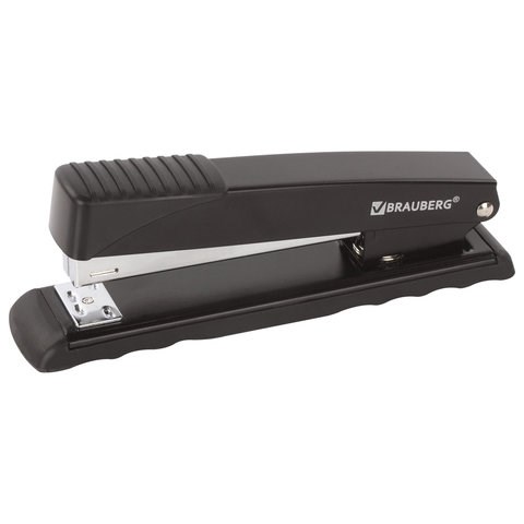 Степлер №24/6, 26/6 металлический BRAUBERG "Office", до 30 листов, полнозагрузочный, черный, 228610