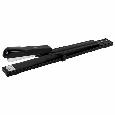 Металлический механизм позволяет сшивать открытым и закрытым способами документы объемом до 25 листов и регулировать глубину закладки бумаги до 30 см. Вмещает 100 скоб № 24/6. Корпус выполнен из металла и пластика.
