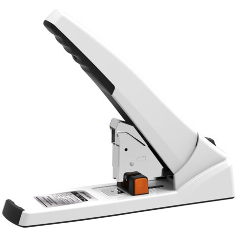 Рабочий механизм выполнен из металла, корпус — из пластика белого цвета. Способен скрепить до 100 листов бумаги. Подходит для скоб № 24/6 - № 23/13. Глубина закладки бумаги регулируется - до 50 мм. Закрытый вид сшивания.
