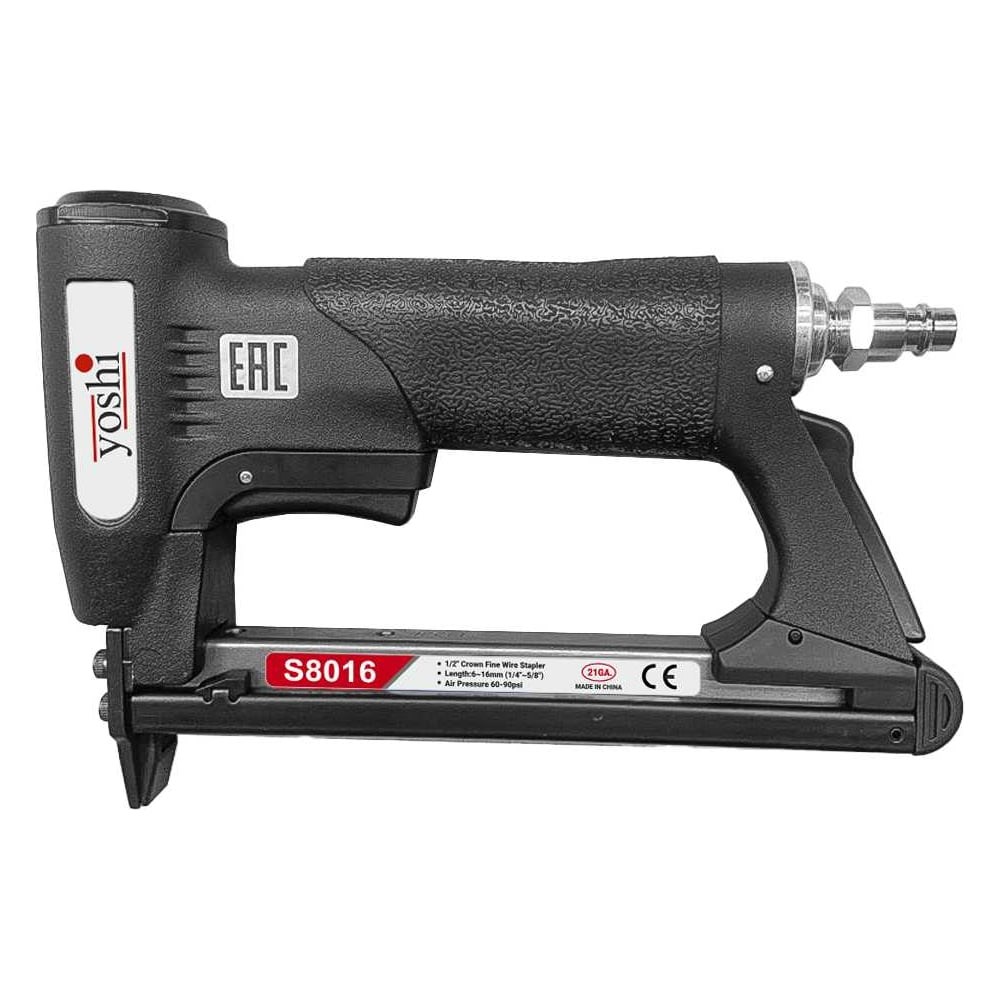 Yoshi S8016 — лёгкий и удобный пневматический скобозабивной степлер для обивочных и декоративных работ. Идеально подходит для крепления тканевых, кожаных и нетканых материалов. Работает со скобами типа А(80) длиной от 6 до 16 мм, что делает его универсальным решением для мебельного производства и отделки интерьеров. Сферы применения: Производство и ремонт мягкой мебели: Широко используется для обивки стульев, кресел, пуфов, диванов, а также для замены или обновления обивки. Фиксация нетканых материалов, синтепона и плёнки: Подходит для работы с утеплителями, упаковочными и защитными материалами. Декоративная отделка интерьеров: Идеален для декоративных панелей, тканевых и кожаных вставок, оформления выставочных стендов, фотозон и арт-объектов. Бренд "Yoshi" входит в комплекс пневматических решений компании "ForEst" и отвечает за разработку и поставку пневматических инструментов и компрессорного оборудования. Тесное сотрудничество с "ForEst" позволяет оптимизировать инструменты для работы как с отечественной, так и с импортной крепёжной продукцией, обеспечивая высокую скорость, точность и надёжность. Инструменты Yoshi отличаются продуманным дизайном, эргономичностью и долговечностью, что делает их востребованными как на крупных производствах, так и для личного использования при выполнении бытовых задач и позволяет создавать комплексные пневматические решения.