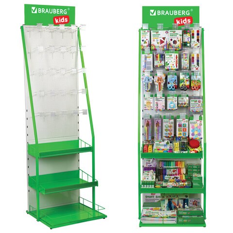 Стойка для размещения товара напольная BRAUBERG KIDS, 205x60x50 см, 25 крючков, 3 полки, 506321
