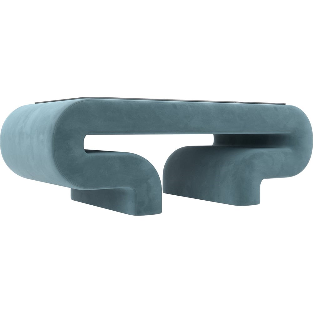 «Волна» – обитый тканью стол, выполненный в утонченном и элегантном стиле. Столешница изделия покрыта прозрачным стеклом толщиной 6 мм. Стол "Волна" с обивкой из ткани выглядит очень интересно и гармонирует с общим оформлением комнаты.