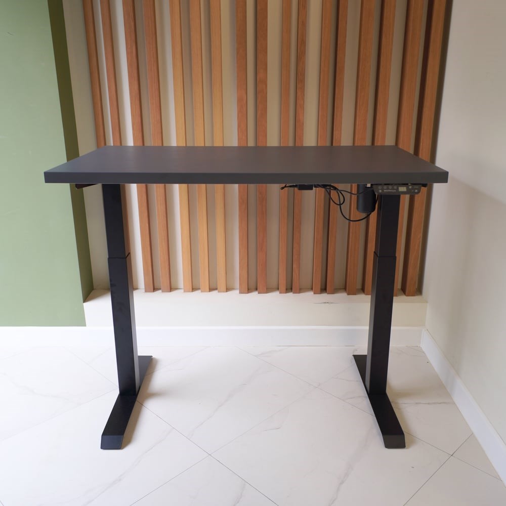 Стол StolStoya МОТОР UP с регулируемой высотой подстолье черное и столешница МДФ эмаль сланцево-серая SE211IBSS12065 является базовым в линейке столов для чередования работы стоя сидя, обладает значительно более высокими характеристиками, нежели у аналогов на рынке. Особенностью этой модели является направление сегментов колонны вверх, то есть снизу идет более широкая часть и из нее выдвигается более узкая (пирамида). Вторая особенность - квадратное сечение, что увеличивает устойчивость стола для работы стоя в верхнем положении Особенности: Устойчивая конструкция. Легкая сборка Размер опоры 650 мм Размер боковой верхней опоры столешницы 570*46 мм Регулируемая ширина от 103 до 160 см Регулировка высоты от 70 до 117 см Подъемный вес - 100 кг Пульт управления с возможностью сохранения 4-х положений столешницы Защита от перегрева Функция изменения параметров движения Экран отображающий высоту столешницы Защита от детей. Цвет: черный, белый, серый Питание: 120V/230 вольт