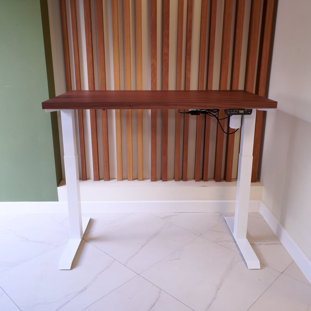 Стол с регулируемой высотой StolStoya МОТОР UP подстолье белое и столешница МДФ шпон Американский орех SE211I120WAO является базовым в линейке столов для чередования работы стоя сидя, обладает значительно более высокими характеристиками, нежели у аналогов на рынке.Особенности рамы с подъемным механизмом:Устойчивая конструкцияЛегкая сборкаРазмер боковой верхней опоры столешницы 570х46 ммРегулируемая ширина от 103 до 160 смРегулировка высоты от 74 до 121 смПульт управления с возможностью сохранения 4-х положений столешницы.Можно использовать как игровой стол для геймеров.Регулировка высоты помогает настроить идеальную высоту в зависимости от высоты кресла.На широкой столешнице помещается все необходимое.Подходит тем, у кого болит поясница или долго приходится работать в сидячем положении.