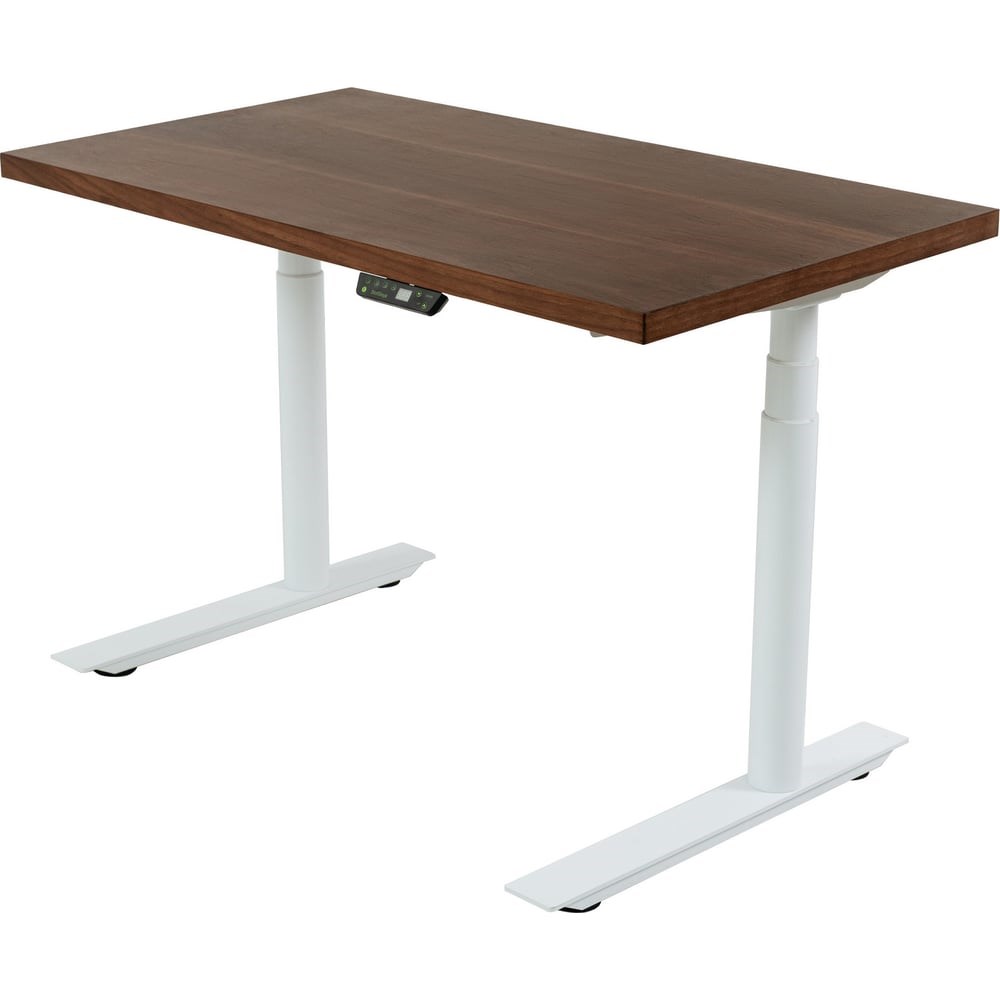 Стол с регулировкой высоты StolStoya ТИТАН Design рама белая, столешница МДФ, шпон, американский орех, 160x80 SE221DWAO16080 совмещает в себе все преимущества флагманской рамы для чередования работы стоя и сидя. Изделие выделяет редкий дизайн с круглыми ножками и со смещением оси опор. Столешница легкая, изготовлена по каркасной технологии. Имеет отделку шпоном с покрытием итальянскими лаками. Благодаря этому стол получает дополнительную индивидуальность и красоту. Особенности модели: Устойчивая конструкция Легкая сборка Размер опоры 700*75 мм Размер боковой верхней опоры столешницы 570*46 мм Регулируемая ширина от 107 до 180 см Регулировка высоты от 63 до 128 см Управление с пульта и мобильного приложения Пульт управления с возможностью сохранения 4-х положений столешницы Защита от перегрева Система защиты от столкновения Функция изменения параметров движения Защита от детей Функция чувствительности баланса Экран отображающий высоту столешницы Электронная система защиты от зажима с возможностью настройки чувствительности Напоминание о смене положения Питание: 120V/230 вольт Скорость подъема: 30 мм/с
