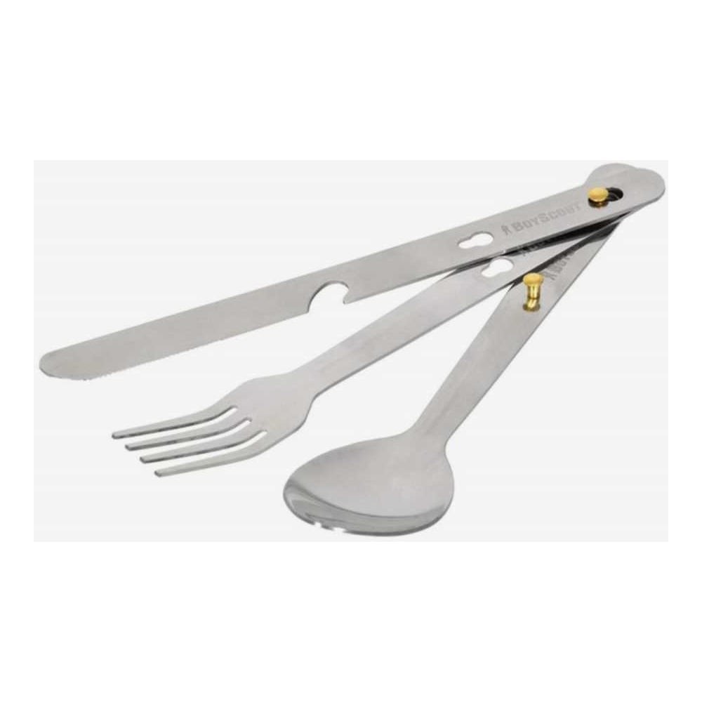Набор столовых приборов BOYSCOUT /вилка, ложка,нож/, в чехле, 16 см /24 61085 удобен для использования в походных условиях, на пикнике, во время отдыха на природе. Приборы легко собираются в набор, занимающий минимум места. Вилка, ложка и нож изготовлены из нержавеющей стали, отличаются практичностью и долговечностью. Чехол в комплекте позволяет компактно и удобно хранить и транспортировать столовые приборы. Размер: 16х3.5 см.