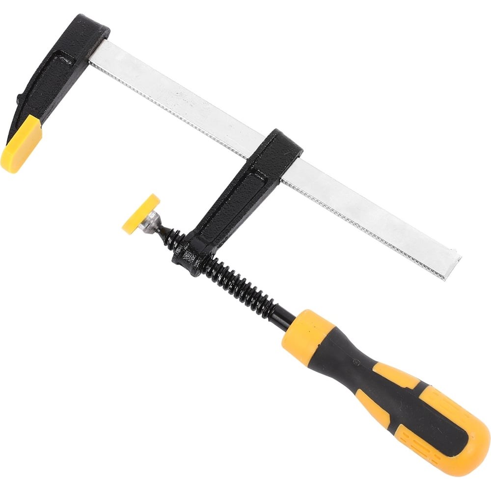 Столярная F-образная струбцина используется в столярном, слесарном и плотницком деле и позволяет фиксировать заготовки из металла, древесины, пластика и других материалов для их соединения, обработки, склеивания, шлифовки, сверления и пр. Ширина зажима составляет 300 мм, а глубина до 80 мм. Штанга изготовлена из высококачественной стали А3 и толщиной 3,5 мм устойчива к деформации и прослужит долго. Диаметр резьбового стержня 9,5 мм. Максимальное усилие зажима 1500 Н. Эргономичная, двухкомпонентная рукоять удобно лежит в руке и обеспечивая комфорт во время работы.