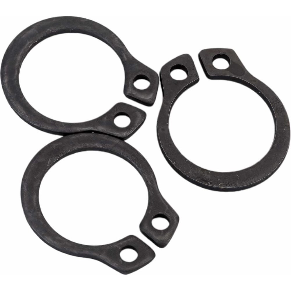 Наружное стопорное кольцо выполнено из высокопрочной гибкой стали, используется для фиксации деталей на валу. Имеются отверстия для разведения в стороны при помощи съемника. Защитное покрытие предохраняет изделие от коррозии.