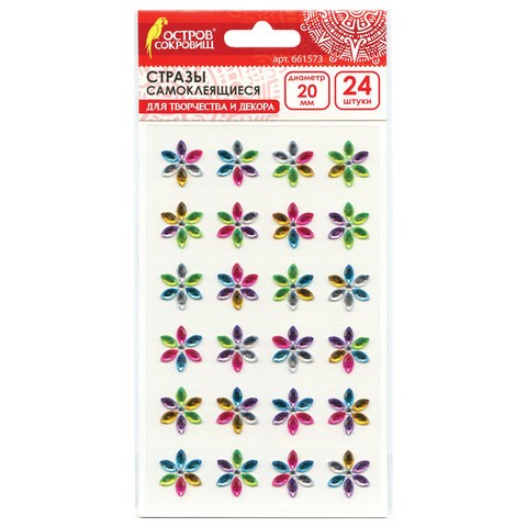 Стразы самоклеящиеся "Цветы", радужные, 20 мм, 24 шт., на подложке, ОСТРОВ СОКРОВИЩ, 661573