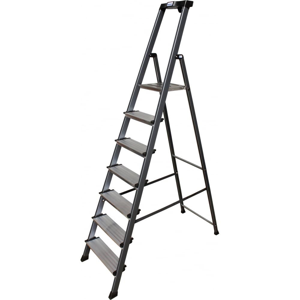Стремянка, анодированные боковины Krause MONTO SECURO, 7 ступеней 126450 превосходно подойдет для ремонтных и отделочных работ. К боковинам инструмента, изготовленным из анодированного алюминия, надежно прикреплены шестикратными заклепочными соединениями широкие ступени (125 мм). Конструкция устойчива, благодаря большими опорными наконечниками, площадь которых увеличена на 100%, по сравнению со стандартными. Имеется полка с крюками для ведра и углублениями под инструменты. Анодированные боковины не загрязняют руки и легко очищаются.Продукт сертифицирован в строгом соответствии с ГОСТ Р 58752-2019 и DIN EN-131.