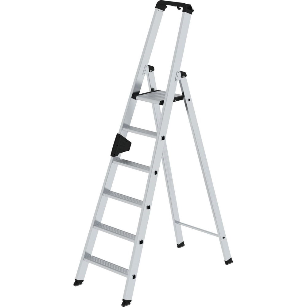 Стремянка MUNK 6 ступеней рукоятка Ergo-pad 040106Стремянка MUNK Guenzburger Steigtechnik - удобство использования, прочность и надежность!Nivello® - это надежная основание с подвижным соединением для полноценной сцепки поверхности и в 4 раза большего контакта с поверхностью, чем у традиционных лестничных башмаков.Рукоятка Ergo-pad® - с ее помощью удобно переносить и хранить стремянку.Особенности:Немецкое качество сборки и материалов;Устойчивые стойки из прямоугольного профиля;Ступеньки глубиной 80 мм и большая площадка;Развальцованное с 4х сторон соединение ступени со стойкой;Коническая направляющая для надежной стойки;Лестничные подошвы nivello® с запатентованной технологией наклона по 2 осям;Рукоятка для переноса и хранения ergo-pad® с зажимным механизмом;Соединение стоек закрыто крышками;Практичный лоток со встроенным крючком и держателем для инструментов;Стремянки семь и более ступеней комплектуются фиксатором распорки с двумя ремнями из высокопрочного полиэстера;Расстояние между ступеньками: 235 мм;Наклон лестницы: 70°;Транспортные габариты: 2183 x 548 x 164 мм;Максимальная нагрузка: 150 кг.