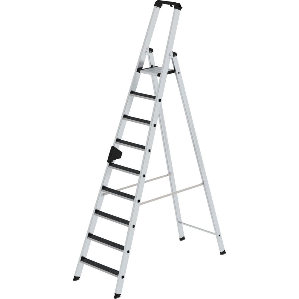 Стремянка MUNK Guenzburger Steigtechnik - алюминиевая стремянка со ступенями, на которых установлено противоскользящее покрытие Clip-step R13, обеспечивающее безопасность пользователя при работе со стремянкой. Покрытие ступеней R13 - специальное корундовое противоскользящее покрытие на ступенях глубиной 80 мм. Nivello® - это надежная основание с подвижным соединением для полноценной сцепки поверхности и в 4 раза большего контакта с поверхностью, чем у традиционных лестничных башмаков. Рукоятка Ergo-pad® - с ее помощью удобно переносить и хранить стремянку. Немецкое качество сборки и материалов; Устойчивые стойки из прямоугольного профиля; Ступеньки глубиной 80 мм и большая площадка; Развальцованное с 4х сторон соединение ступени со стойкой; Коническая направляющая для надежной стойки; Clip-step R13 специальное корундовое противоскользящее покрытие; Лестничные подошвы nivello® с запатентованной технологией наклона по 2 осям; Рукоятка для переноса и хранения ergo-pad® с зажимным механизмом; Соединение стоек закрыто крышками; Практичный лоток со встроенным крючком и держателем для инструментов; Фиксатор распорки, два ремня из высокопрочного полиэстера; Расстояние между ступеньками: 235 мм; Наклон лестницы: 70°; Транспортные габариты: 2928 x 635 x 164 мм; Максимальная нагрузка: 150 кг.