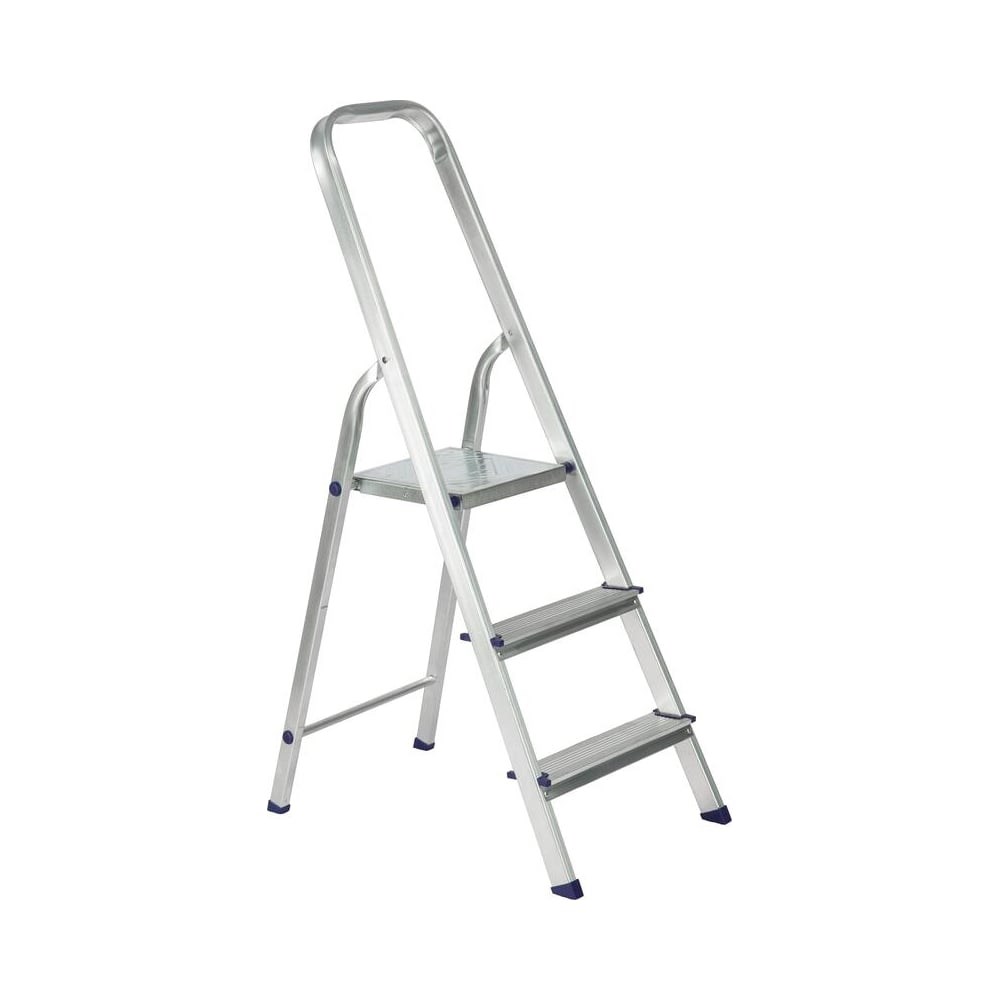 Стремянка предназначена для проведения различных видов работ как в быту, так и на производстве. Представляет собой свободностоящую переносную лестницу, сужающуюся к верху, имеющую сторону подъема (переднюю ногу), опорную сторону (заднюю ногу), рабочую площадку и раскладывающуюся для выполнения определенной задачи. Дуга безопасности конструктивно выполнена совместно со стороной подъема. Алюминиевая стремянка изготовлена из высокопрочного алюминиевого профиля. Задняя и передняя нога соединены между собой. Рабочая площадка выполнена из оцинкованной стали. Ступени имеют рифленую поверхность. Башмаки изготовлены из высокопрочного пластика. Стремянка в рабочем положении надежно фиксируется рабочей площадкой. Необходимо отметить, что производство стремянок удалась автоматизировать, что исключило влияние "человеческого фактора" на качество продукции. При этом стремянки приобрели дополнительную прочность, возросла их надежность и долговечность.