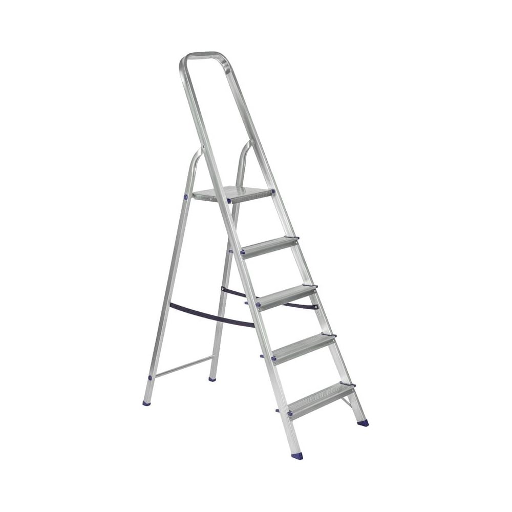 Стремянка предназначена для проведения различных видов работ как в быту, так и на производстве. Представляет собой свободностоящую переносную лестницу, сужающуюся к верху, имеющую сторону подъема (переднюю ногу), опорную сторону (заднюю ногу), рабочую площадку и раскладывающуюся для выполнения определенной задачи. Дуга безопасности конструктивно выполнена совместно со стороной подъема. Алюминиевая стремянка изготовлена из высокопрочного алюминиевого профиля. Задняя и передняя нога соединены между собой. Рабочая площадка выполнена из оцинкованной стали. Ступени имеют рифленую поверхность. Башмаки изготовлены из высокопрочного пластика. Стремянка в рабочем положении надежно фиксируется рабочей площадкой. Необходимо отметить, что производство стремянок удалась автоматизировать, что исключило влияние "человеческого фактора" на качество продукции. При этом стремянки приобрели дополнительную прочность, возросла их надежность и долговечность.