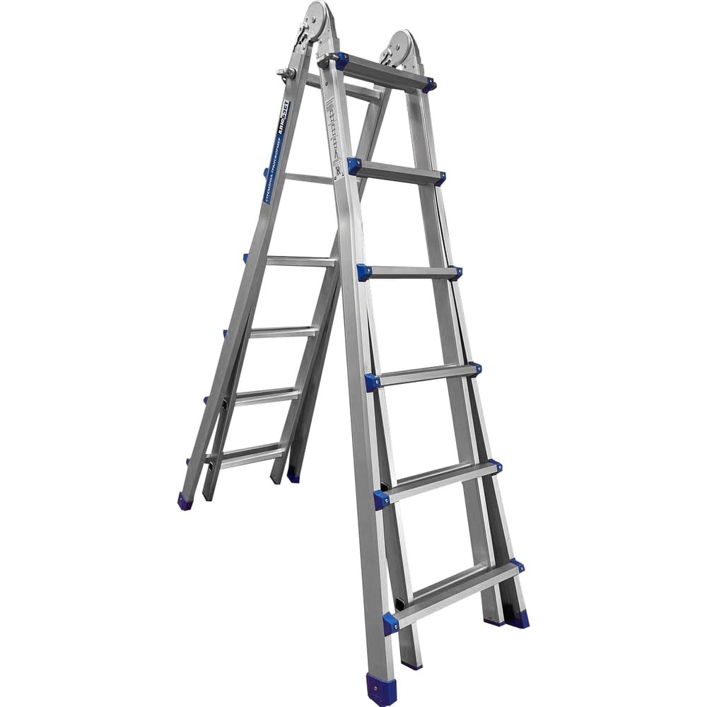 Стремянка-трансформер АЛЮБЭСТ 622 см DLM406 подходит для строительства и ремонта на профессиональном уровне, а также для бытовых работ. Универсальность. Может складываться в необходимую для работы конструкцию: приставную лестницу, стремянку, подмости. Компактность. В сложенном состоянии лестница имеет небольшие габариты, что позволяет легко транспортировать её. Антискользящие насадки на опорах и широкая траверса обеспечивают устойчивое положение лестницы во время работы. Надежность. Изготовлена из алюминия, благодаря чему отличается прочностью и устойчивостью к образованию коррозии.