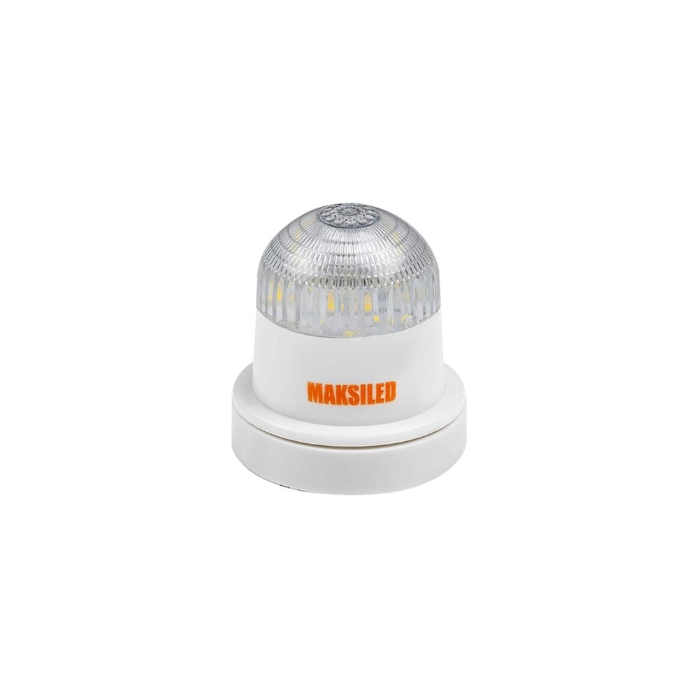 Стробоскопическая лампа MAKSILED 1 шт, 0.5Вт, 220В, IP65, 7LED, синий, ML-STR-ER3528-B предназначена для использования внутри и снаружи помещений, исключая воздействие прямых солнечных лучей (наружная реклама, оформление ночных клубов, развлекательных центров, караоке-баров, ресторанов, витрин магазинов). Стробоскопическая лампа MAKSILED, 7 светодиодов SMD 2835, Синий свет, напряжение питания 220 вольт, потребляемая мощность 0.5 Вт, рабочая температура от -20 до +50 градусов. Размеры: 42.5 (Ø) x 45 (H) мм (Ø световой части 33.5 мм). Частоту вспышек можно регулировать от 1 до 3 в секунду. Для удобства монтажа предусмотрен разъем, который соединяет провод стробоскопической лампы длиной 15 см с основным соединительным шнуром длиной 10 см, это позволяет, при необходимости, легко заменять стробоскоп, отсоединяя его от основного питания. Наличие монтажного основания с отверстиями под саморезы или шурупы позволяет устанавливать стробоскоп на рекламный объект легко, защелкнув стробоскоп с монтажным основанием, при этом скрывая сам крепеж.