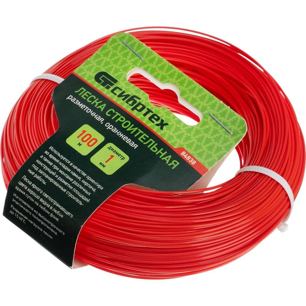 Леска строительная Сибртех 84838, длина 100 м, диаметр 1 мм, оранжевого цвета, пригодится на строительной площадке как ориентир при укладке материалов, установке конструкций. Также она будет полезна для садоводов для разметки территории. Если леску натянуть, то получается идеально ровная линия, что повышает точность работы, а также позволяет проводить замеры с ее помощью.