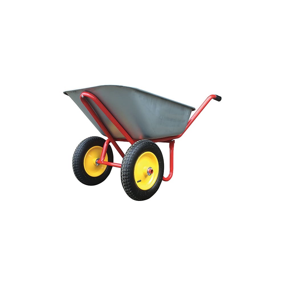 Строительная тачка (двухколесная, 110 л, грузоподъемность 240 кг) FIT РОС Профи 77619 удобна для транспортировки сыпучих грузов различного происхождения. Наличие двух колес делает процесс перевозки более комфортным. Дополнительная опора под носовой частью исключает ее проламывание при перевозке грузов или при опрокидывании тележки.