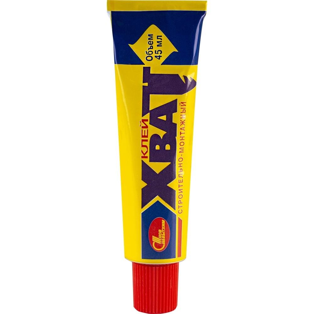 Клей НОВБЫТХИМ ХВАТ строительно-монтажный, 45 мл, в 1484 - универсальный, на ПВА-дисперсионной основе, специально разработан для склеивания элементов из пенопласта, алебастра, оргстекла, всех пород дерева, шпона, фанеры, гипса, ПВХ, керамики и гипсокартона. Он не просто склеит идентичные по структуре материалы, но также их различные сочетания. При этом необходимо следить, чтобы одна из поверхностей или обе имели выраженную пористость. Применяют для внутренних и наружных работ. Состав имеет текстуру в виде жидкости, благодаря чему наносится одним слоем с помощью кисти при температуре от +5 градусов. Время для манипуляций сокращено до 10-15 сек, а полное отвердение произойдет через 24 часа. Продукт не усаживается и не образует подтеков. Не горюч, не токсичен. Клеевой шов можно окрашивать любыми красками. Состав обладает высокой связующей и клеящей способностью, а также механической прочностью и светостойкостью. Сфера использования клея распространяется на большое число строительных и отделочных работ: Приклеивание потолочной и керамической плитки. Оформление декоративными панелями. Установка мебельной фурнитуры. Прокладывание электрокабелей. Монтаж напольного покрытия. Ремонт мебели.