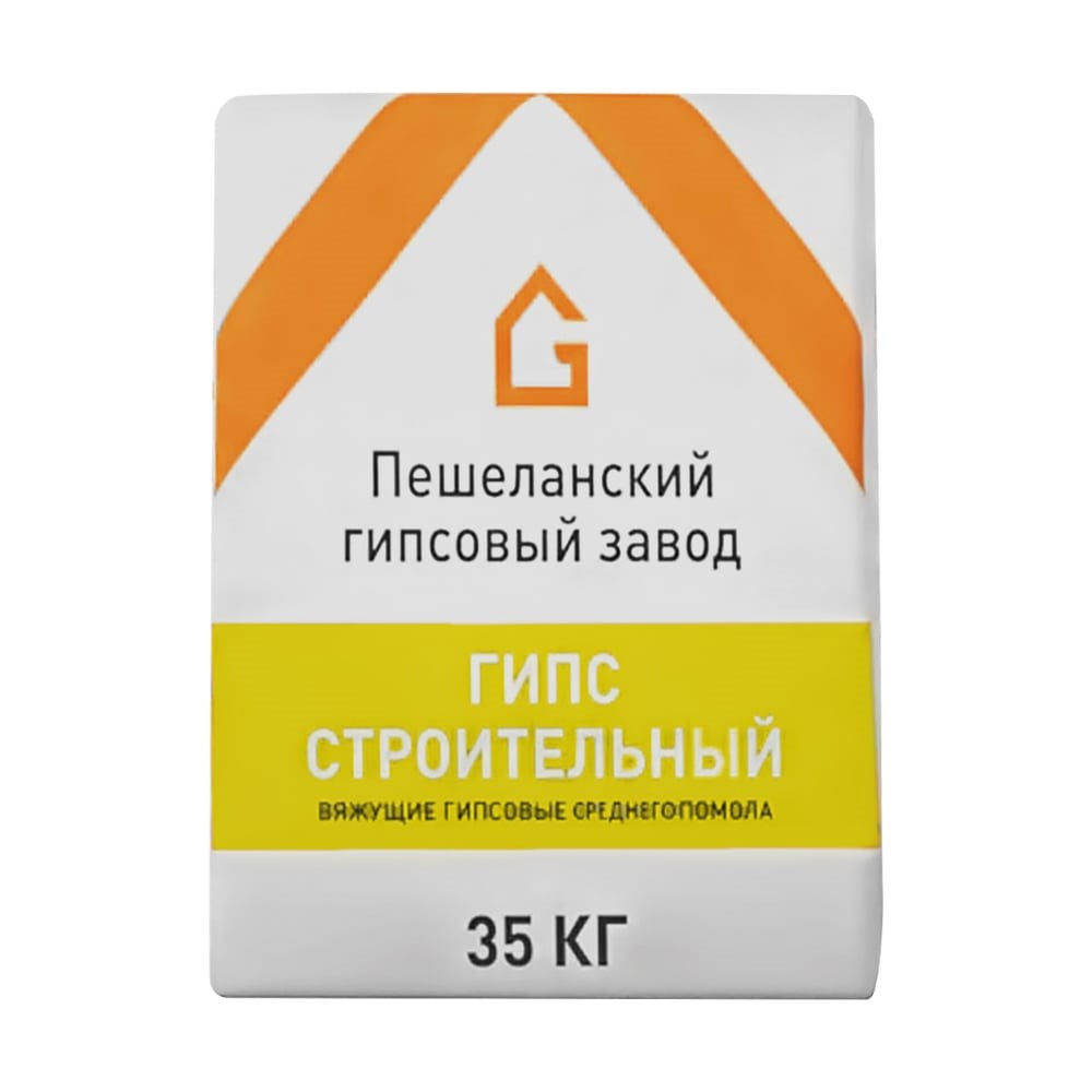 Строительный гипс Пешеланский гипсовый завод 35 кг STD_MSK_00005 - сухой порошок белый или серого оттенка быстротвердеющий на гипсовом вяжущем среднего помола. Гипс строительный Г-5 АII (БII) широко используется для изготовления сухих строительных смесей и различных изделий из гипса при производстве ремонтных работ и реализации дизайнерских интерьерных решений. Прочность гипса на сжатие: 50кг/см2 или 5 МПа Группа Б - нормальнотвердеющий. Время затвердевания равно 6 – 30 минутам. Гипс среднего помола или II – остаток на сите с отверстиями 0,2 мм – 14%.