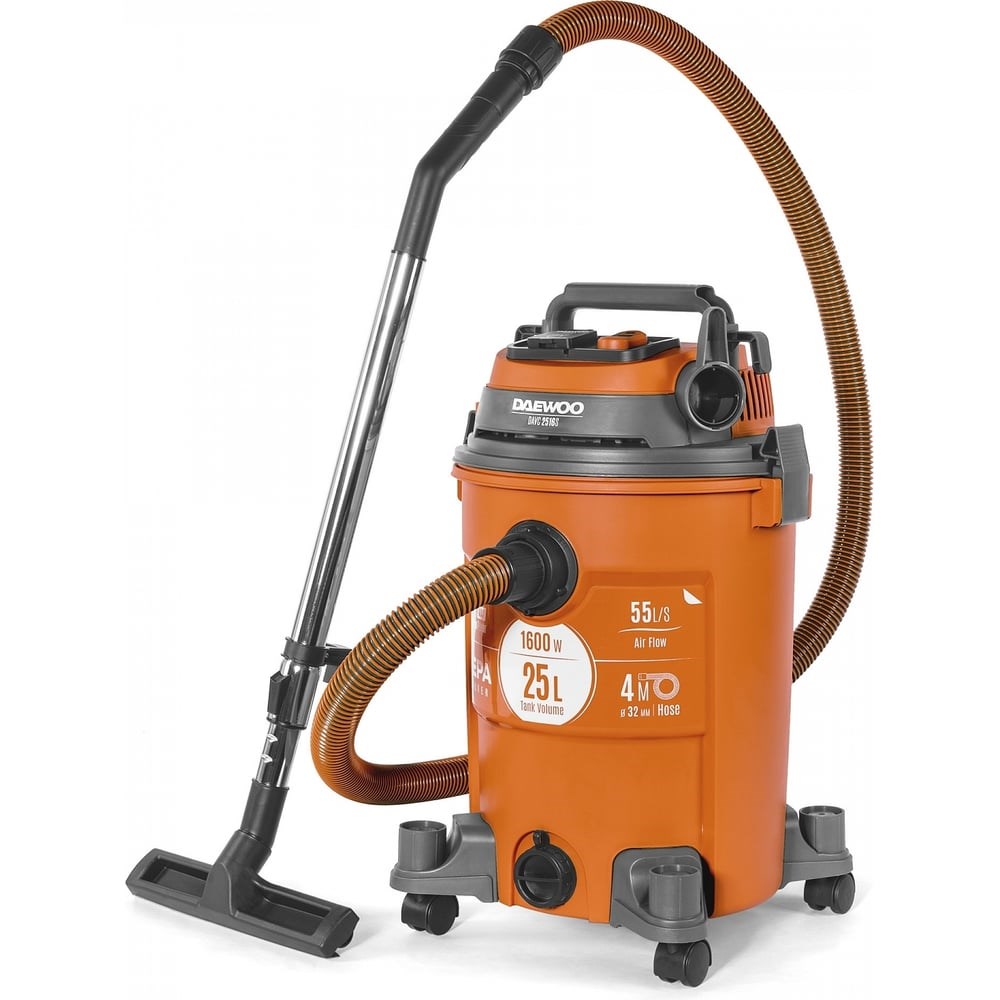 Строительный пылесос с шлангом DAEWOO 4 м DAVC 2516S предназначен для очистки помещений во время строительных работ. Корпус из ударопрочного пластика c ребрами жесткости устойчив к коррозии и механическим воздействиям. Шланг длиной 4 метра и телескопическая стальная штанга позволяют собирать мусор в труднодоступных местах. Оснащен двойной системой фильтрации. В комплекте фильтр предварительной очистки и второй фильтр HEPA для сбора самых мелких частиц пыли. Встроенная розетка позволяет подключать электроинструмент мощностью до 2 кВт. Наличие сливного отверстия позволяет удалить жидкость не переворачивая наполненный пылесос. Работает в 3-х режимах: всасывание сухого строительного и бытового мусора обдув с высоким потоком воздуха сбор жидкости