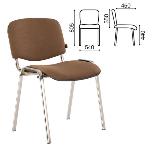 Стул для персонала и посетителей BRABIX "Iso CF-001", хромированный каркас, ткань коричневая, 531421