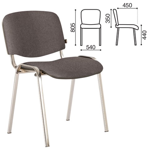 Стул для персонала и посетителей BRABIX "Iso CF-001", хромированный каркас, ткань серая с черным, 531420