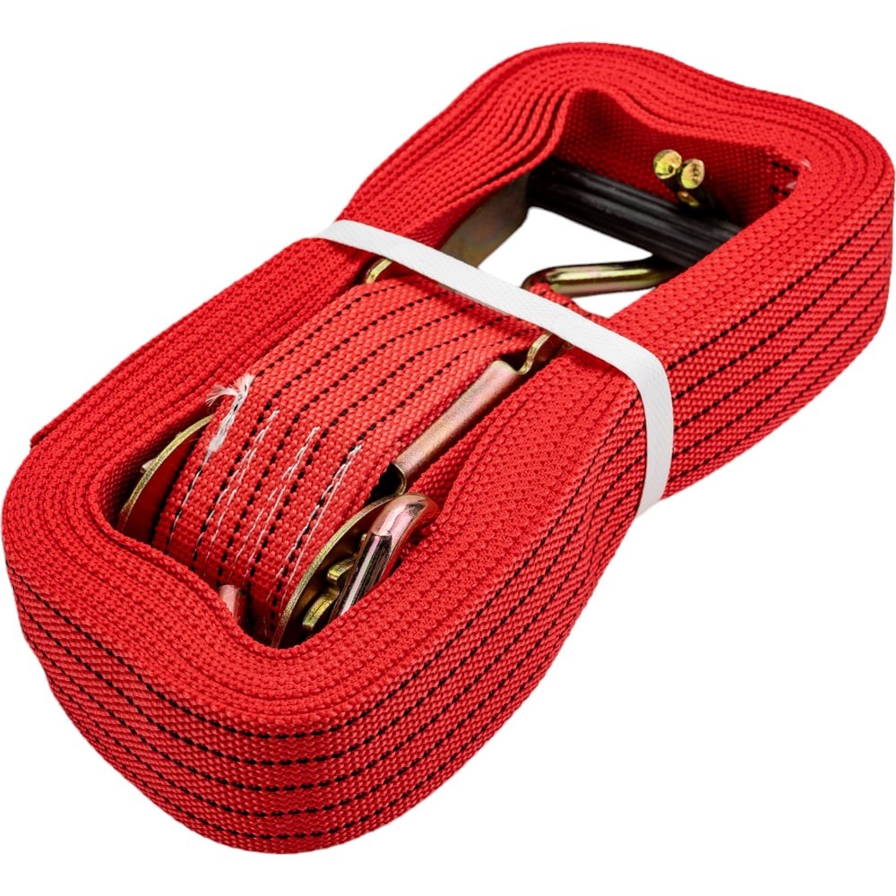 Стяжка груза 50х10000 мм 8т. "RedMark" - комплект из 2 предметов. Изготовлена из специальной полиэфирной нити, что помогает увеличить прочность и срок службы до 2-3 раза. Лента морозостойкая и влагостойкая. Крюки выполнены из стали. Надежный храповой механизм, предотвращающий ослабления натяжения ленты тем самым надежно фиксируя груз.Стяжки изготавливаются из полиэфирных тканых материалов, благодаря чему они оказываются устойчивыми к негативному воздействию окружающей среды, технического масла и прочих химических веществ и не истираются со временем.Стяжки груза с замком торговой марки RedMark надежно фиксируют груз – замок с храповым механизмом зажимает ленту так, что даже при толчках и поворотах во время перевозки натяжение ленты не ослабится. Бережно удерживают груз – мягкий материал ленты не повредит поверхность транспортируемого предмета, его лакокрасочное покрытие и не нарушит форму.Даже при толчках во время движения эластичная лента будет сглаживать эти нагрузки.