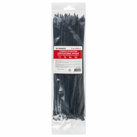 Стяжки (хомуты) нейлоновые SONNEN обеспечивают надежное, быстрое и экономичное крепление. Они просты и удобны в использовании: большим пальцем левой руки прижмите замок к пучку, а правой рукой затяните петлю, вставьте конец затяжки в замок и затяните до полной фиксации, после чего отрежьте выступающую часть бандажа. Не рекомендуется перегибать бандаж при затяжке.