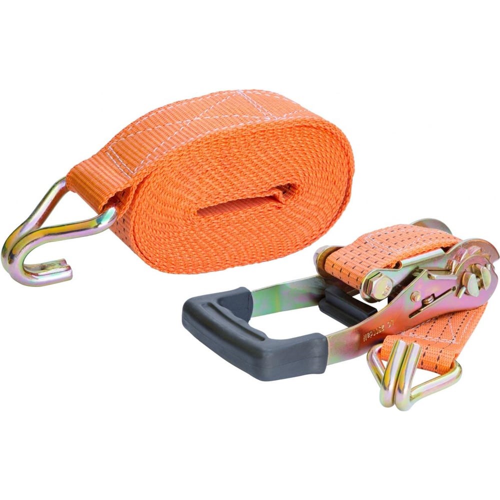 Стяжка крепления груза ДАЛИ-авто 2,5-5 тонн 28873 служит для надежной фиксации груза, препятствует его смещению и повреждению. Храповый механизм оснащен рычажным приводом, что позволяет быстро зафиксировать и отрегулировать длину ремня. Лента изготовлена из полимерных материалов (капрон, нейлон и полиэстер), которые отличаются устойчивостью к стиранию и негативному воздействию окружающей среды. Крюки из анодированного металла не подвержены влиянию коррозии в течение всего срока службы стяжки.