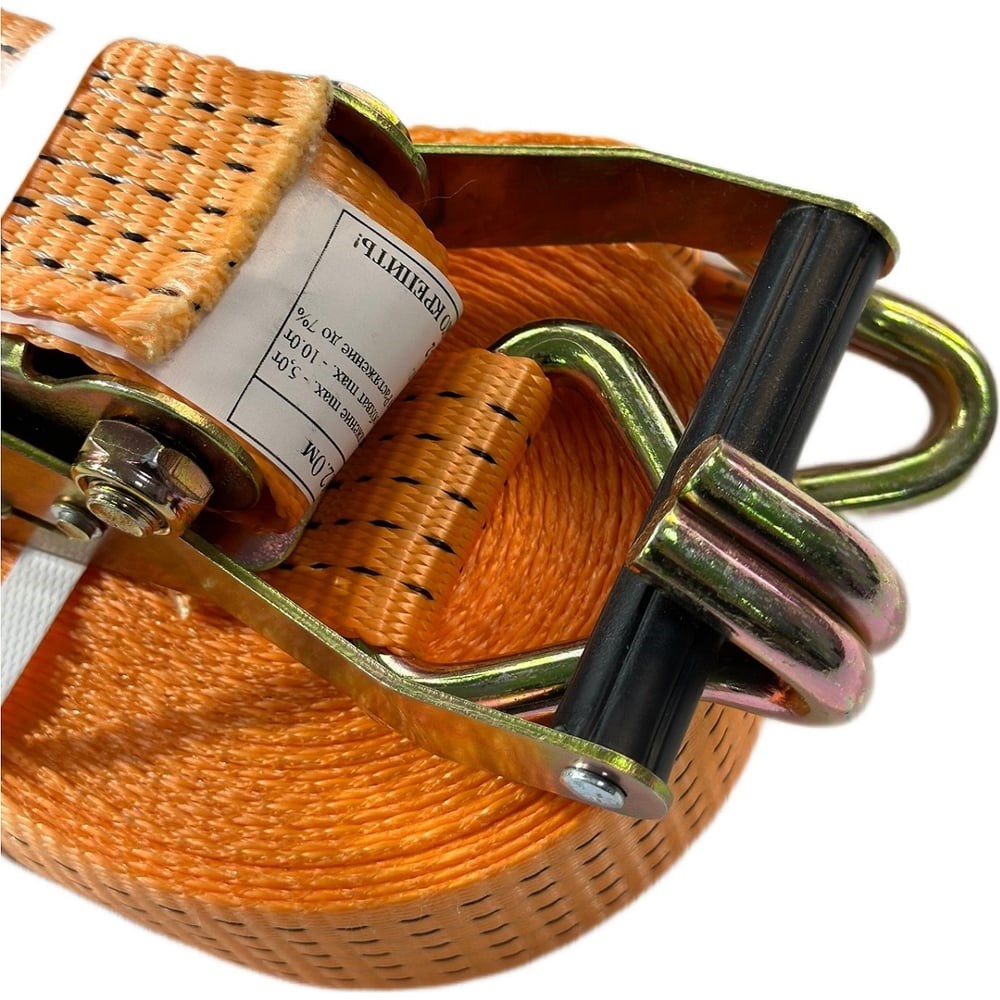 Стяжной ремень для крепления груза ГрузоподъемТехоснастка 5.0/10.0/8.0м., крюк-крюк, с храповым натяжным механизмом, 4687203633608 ширина ленты 50мм, для закрепления грузов в кузове автомобиля, платформах спецтехники и вагонов, контейнерах, при транспортировке. Длина ремня - 8.0 м, ширина 50 мм. Ремни изготовлены из высокопрочной ленты, материал – 100% полиэстер. Лента стяжного ремня устойчива к воздействию жестких погодных условий, механизм затяжки и двойные крюки обладают высокой прочностью. Ремни имеют информационную бирку с указанием схемы закрепления груза и показателей нагрузки, сопровождаются паспортом крепежного устройства. Необходимое такелажное оборудование для транспортировки грузов всех форм и размеров. Благодаря использованию трещотки обеспечивается максимально допустимая сила стягивания или закрепления груза. Прочные крюки из металла гарантируют надежную фиксацию.
