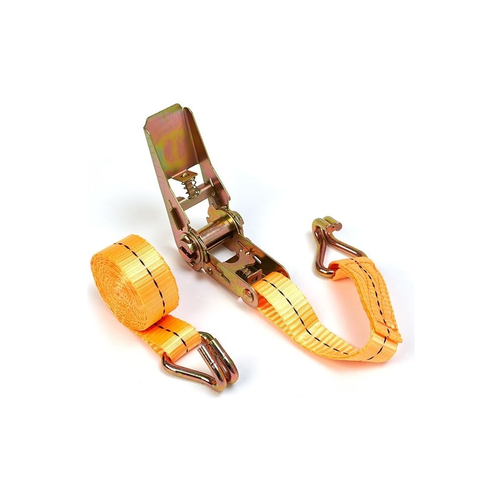 Стяжной ремень СК 0,8/1,6 т, 6 м, лента 25 мм CK1RST.00800.001612 применяется для фиксации грузов при перевозке на автомобилях, эвакуаторах и другом транспорте. Ремень изготовлен из текстильной ленты. Материал рассчитан на эксплуатацию в любых погодных условиях. Изделие надежно закрепляет транспортируемые предметы, не повреждая поверхность и не нарушая их форму. Надежный зубчатый механизм с упором после закрепления груза не позволяет ремню двигаться в обратную сторону, что предотвращает ослабление натяжения во время движения транспорта. Крюки выполнены из прочной стали. Такие стяжные ремни в основном применяют для крепления крупногабаритных грузов, например автомобилей на эвакуаторе.