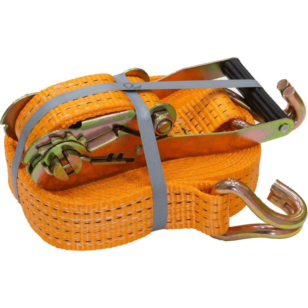 Стяжной ремень Строп-Стор 50 мм (2500/5000 кг) 12 м S10079 используется во время транспортировки различных грузов. Текстильная лента изготовлена из очень прочного полиэфирного сырья. Она обладает высоким уровнем износоустойчивости, не подвержена воздействию технических масел, химически активных веществ и других агрессивных факторов внешней среды. Особенность поверхности ленты стяжного ремня позволяет достаточно плотно прижать перевозимый груз, но при этом избежать его деформации или повреждения. Натяжение и фиксация стяжного ремня обеспечивается при помощи храповых замков или рэтчетов, представляющих собой особые виды натяжных устройств.