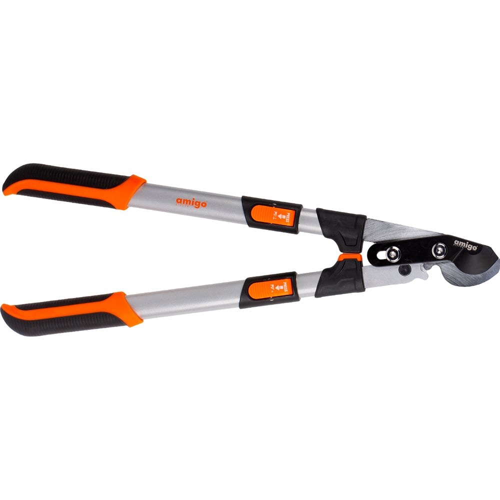 Сучкорез AMIGO 76161 предназначен для подрезки кустов, веток деревьев и стеблей растений. Инструмент способен справляться с ветками диаметром до 40 мм. Накладки эргономичной формы позволяют надежно ухватится за ручки и обеспечивают комфорт в процессе работы. Благодаря телескопическим ручкам можно увеличить усилие, а храповой механизм дополнительно облегчит процесс обрезки веток.
