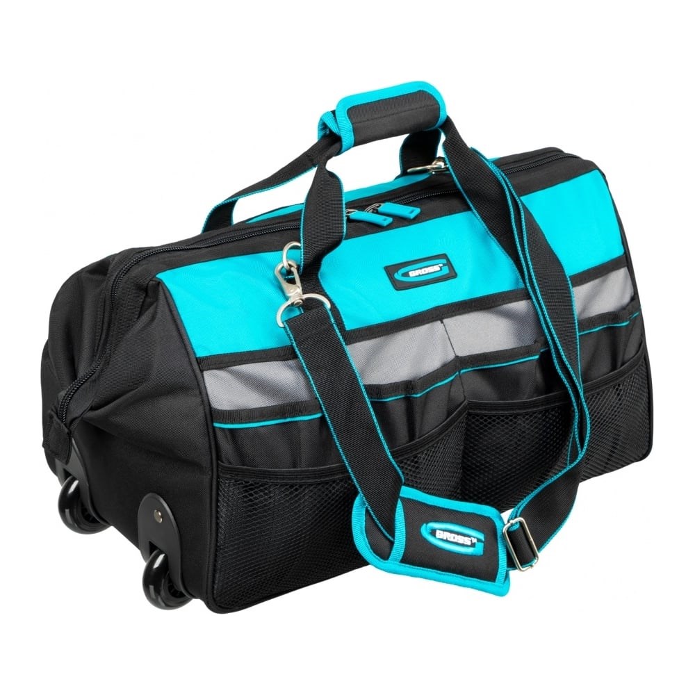 Сумка Gross 90276 габаритами 500 х 280 х 290 мм, с выдвижной рукояткой, колесами и наплечным ремнем, удобна для хранения и транспортировки инструментов, оснастки, крепежа и расходных материалов. Будет полезна автовладельцу, сантехнику, монтажнику, слесарю, пригодится дома, на даче и в гараже. Для переноски имеются ручки и регулируемый наплечный ремень длиной 1350 мм с широкой накладкой.