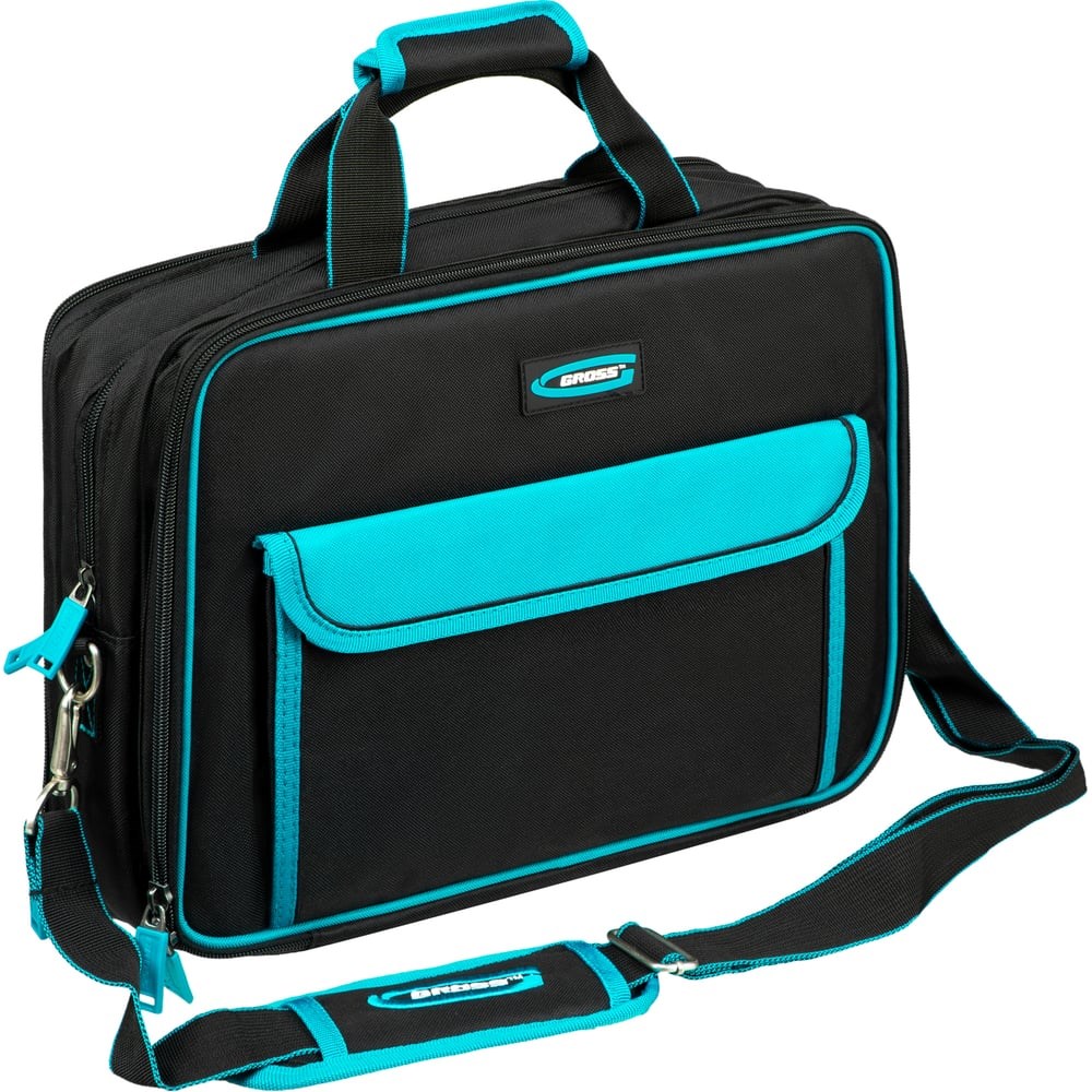 Сумка Gross Meister 90271, 400 х 170 х 300 мм, 31 карман, с отсеком для ноутбука и наплечным ремнем, удобна для переноски и хранения ручных инструментов. Подойдет мастерам по ремонту техники, слесарям, электрикам. Сумку можно брать в офис — в ней помещается ноутбук диагональю до 15 дюймов и бумаги формата А4. В сумке 31 карман и удобные фиксирующие резинки, поэтому каждый инструмент в ней всегда на своем месте.