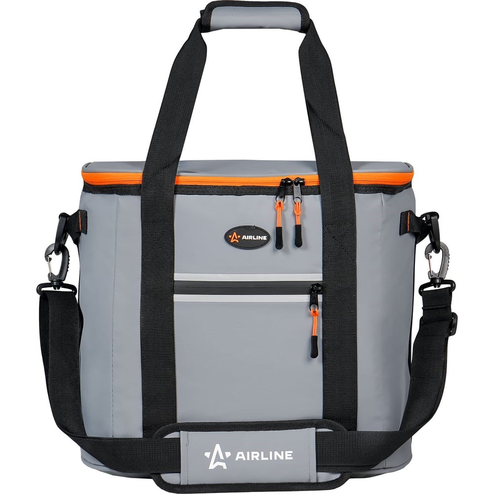 Сумка-холодильник Airline Пикник 32 л, 37.5х34х26 см, серая ADCB008 - это надежное средство для обеспечения необходимой температуры и поддержания ее на протяжении длительного периода времени для транспортировки продуктов или других веществ. Сохранение температуры происходит из-за состава изделия, в который входят полиэстер, вспененный полиуретан, а также водонепроницаемая PEVA пленка. Сумка имеет дорожно-спортивный фасон кубической формы, что позволяет использовать ее не только для хранения продуктов, но и для перевозки объемных вещей. Для удобства открывания замочки молнии оснащены пуллерами (подвесками).