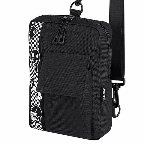 Сумка на плечо HEIKKI TORRENT (ХЕЙКИ) с карманом, "Chess emoji", черная, 25х18х3 см, 272638