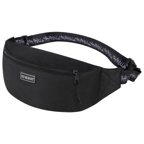 Сумка на пояс HEIKKI RIO (ХЕЙКИ), два отделения, регулируемый ремень, черная с белым, 38х12х8 см, 272617
