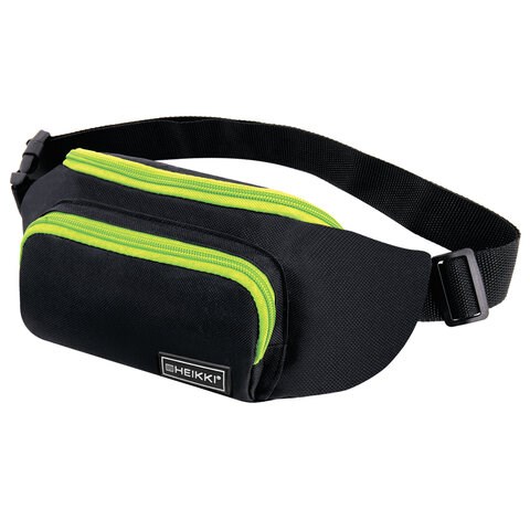 Сумка на пояс HEIKKI RIO (ХЕЙКИ), карман, регулируемый ремень, черная/салатовая, 30х12x10 см, 272615