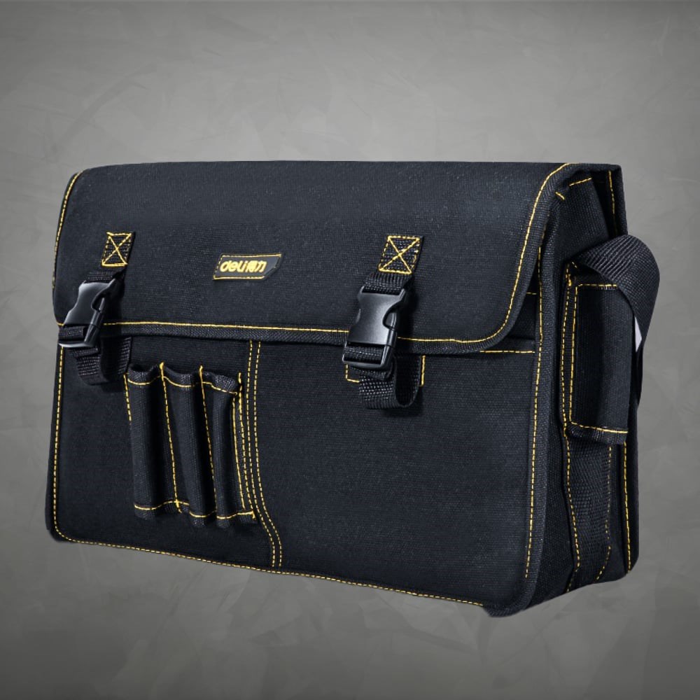 Сумка-планшет для инструментов Deli DL-P7 изготовлена из прочной ткани канвас, обладающей высокой износостойкостью и долговечностью. Канвас - полунатуральный материал, внешне напоминающий холст. Представляет собой доработанную версию парусины. Он почти не пропускает воду, легко стирается от пятен, мягкий на ощупь и долго сохраняет первозданный вид. Сумка оснащена основным объемным отделением, которое позволяет удобно разместить различные инструменты и принадлежности, закрывающееся защёлками фастекс, предотвращающие выпадение инструментов при движении или транспортировке сумки. Так же внутри сумки находится большой внутренний карман, предназначенный для хранения более мелких предметов или документов. На боковых сторонах сумки расположены два узких кармана, предназначенные для хранения узких инструментов, таких как отвертки, ручки ножей и прочих мелких предметов. Это удобно, так как позволяет сохранить порядок внутри сумки и легко найти нужный инструмент при работе. На лицевой стороне сумки находятся три петли, которые предоставляют возможность закрепить дополнительное оборудование, такое как ручки, отвертки или зажимы. Это позволяет иметь эти инструменты всегда под рукой и упорядочить рабочую зону. Один большой карман во всю ширину сумки и дополнительный карман на липучке. Для комфортной переноски сумки предусмотрен регулируемый плечевой ремень. Отлично подойдёт для электриков, сантехников, плотников, столяров, замерщиков и других.