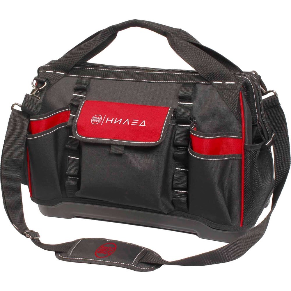 Сумка универсальная для инструмента, представляет собой устройство для переноски инструмента. Сумка выполнена в стиле саквояжа, что обеспечивает большую прочность и грузоподъемность, благодаря материалу сумки - полиэстер 600d - пользуется популярностью и широко используется, поскольку отличается приличной плотностью, низкой электропроводимостью и прекрасной устойчивостью к воздействию негативных климатических факторов и водостойкостью. Преимущества полиэстера 600d: износостойкость; легкость; отсутствие деформации; устойчивость к высоким температурам; водонепроницаемость; стойкость к загрязнениям. Сумка обладает функциями органайзера, в связи с чем исключает истирание изоляции инструмента в процессе переноски, транспортировки, а также обеспечивает удобство использования - 35 внешних и 13 внутренних карманов для размещения инструмента Грузоподъемность, кг - 20 Размер сумки, мм - 410х210х305 Линейная плотность волокон - 600 ден